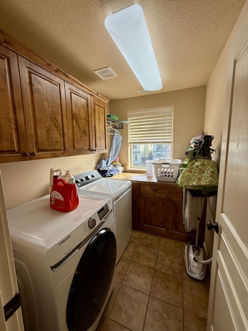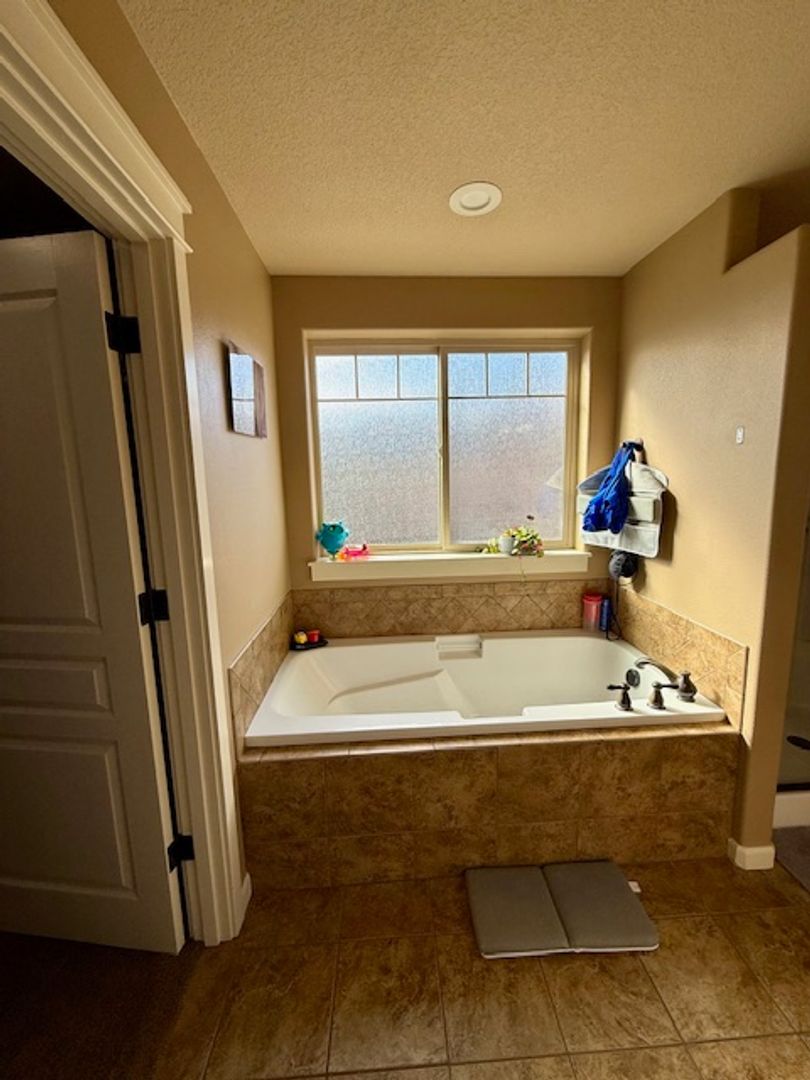 Upstairs you’ll find three additional bedrooms, a bonus room perfect for recreation or media use, and a convenient laundry room with washer and dryer included. The spacious primary suite offers a relaxing retreat with a soaking tub and an oversized walk-in closet.