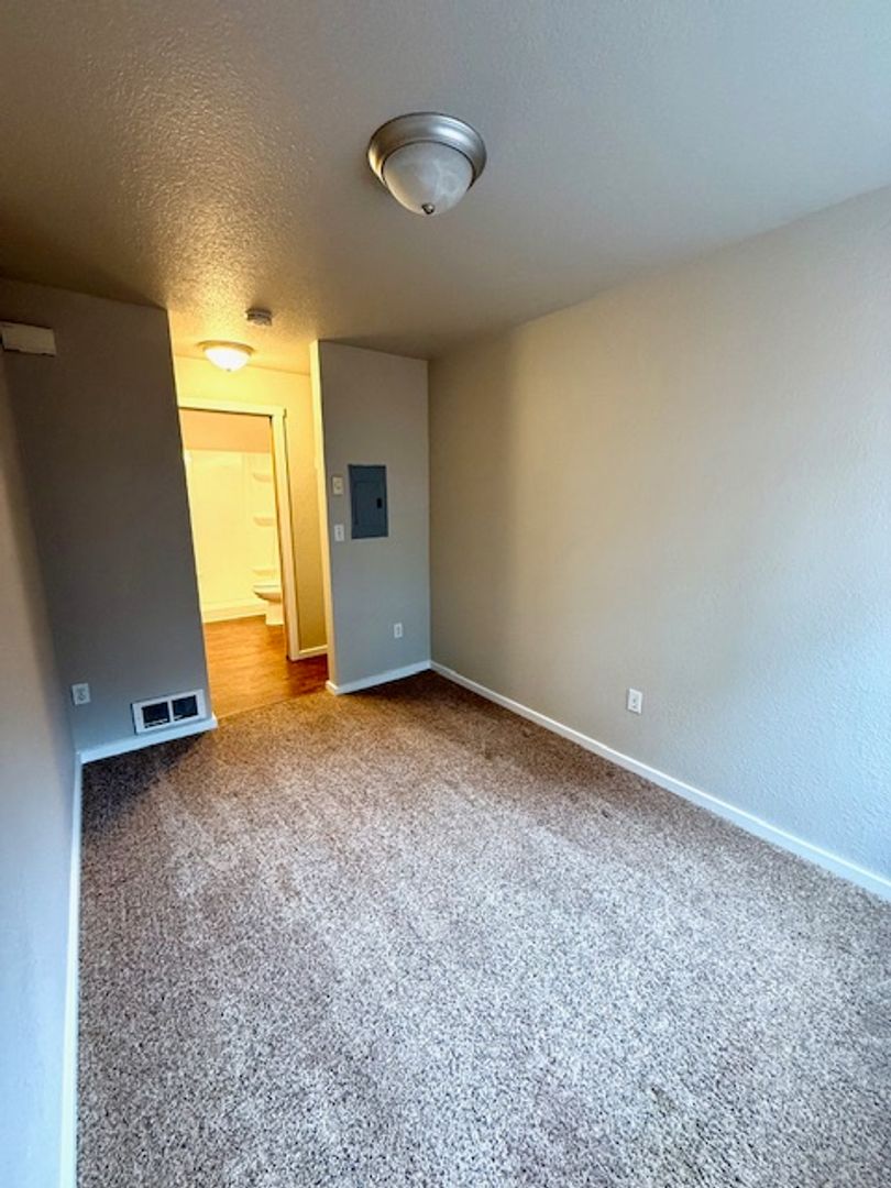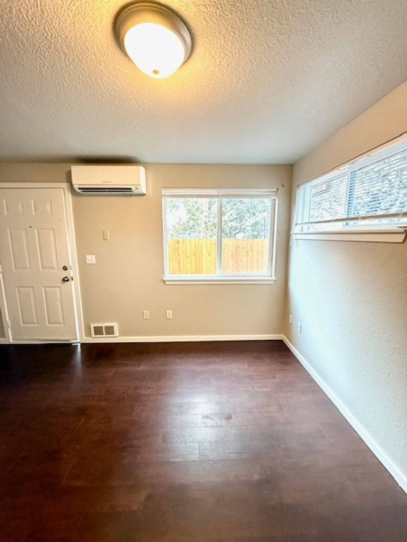 Updated spacious cozy studio unit ready now! This unit has a ductless heat/a/c unit for efficiency. Nice and cozy living room space and kitchen and wall that separates the bedroom area.