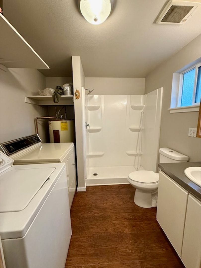 Bathroom has a shower and an included washer and dryer!