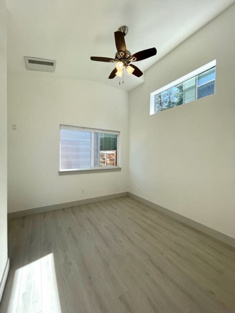 The bedroom is nicely sized and has nice windows that really brighten up the room. There is a ceiling fan in the bedroom, also!