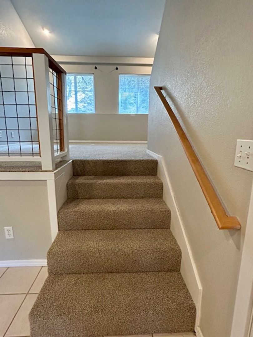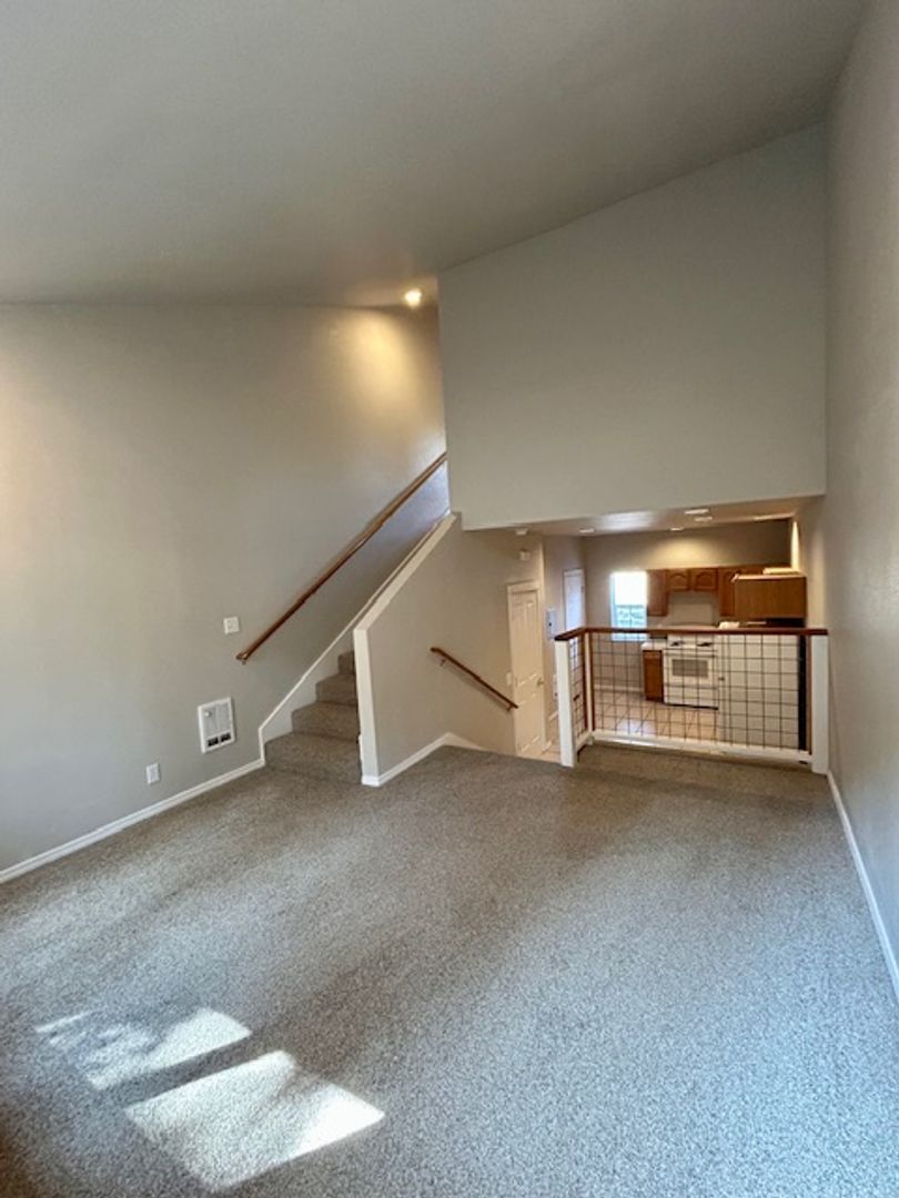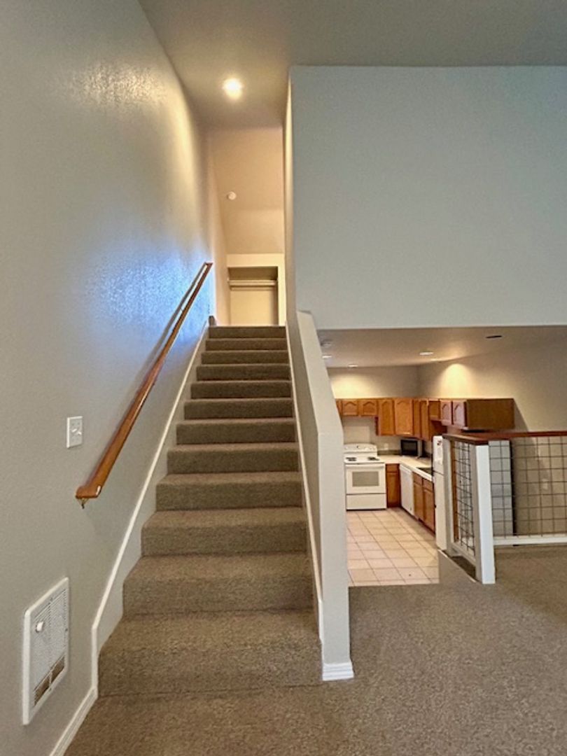 This cozy home is ready for you to call it your own! Fresh pain and new carpet and this unit feels like a tree house little getaway! When you walk in you have a nice open kitchen. You can go up some stairs into a open living room space that has windows looking out into a open nature area.
