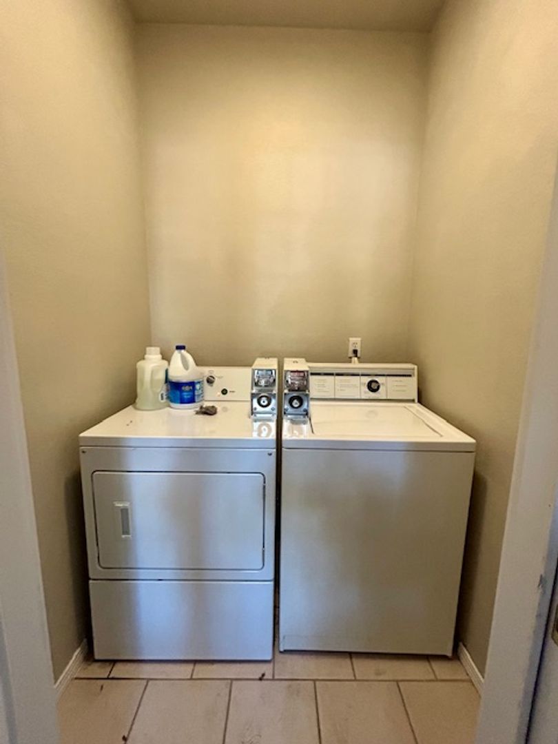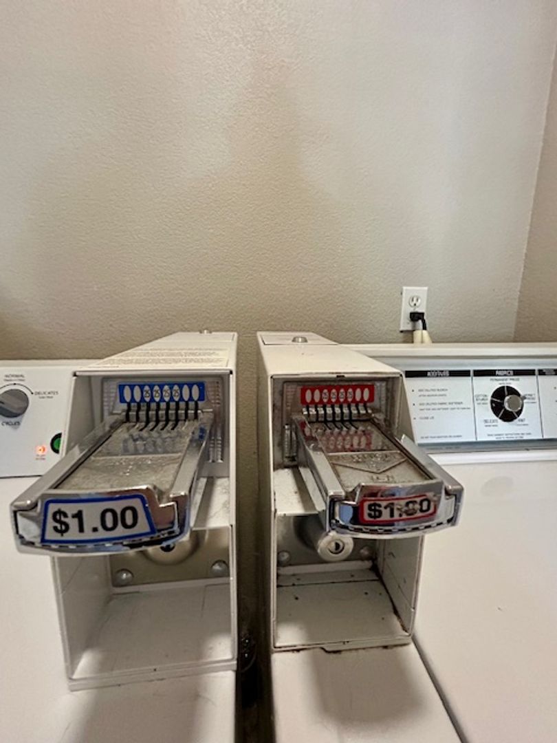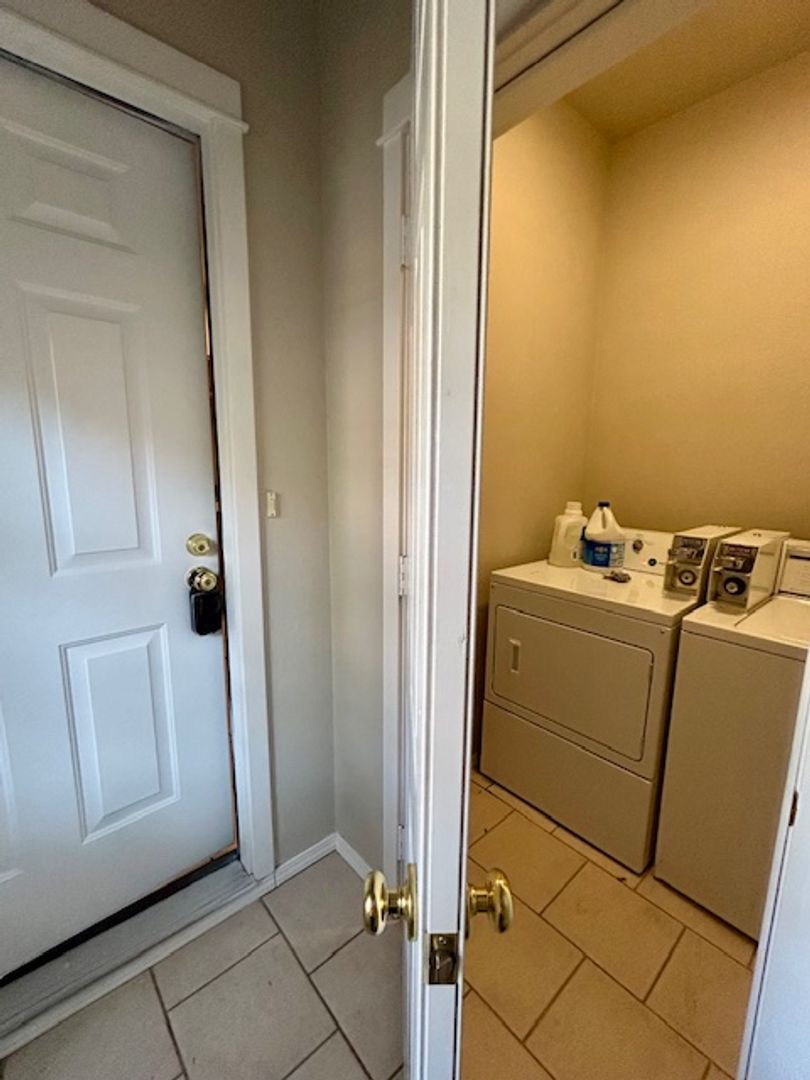 This home shares a coin operated laundry room and also shares a one car spot in a detached garage (not private!).