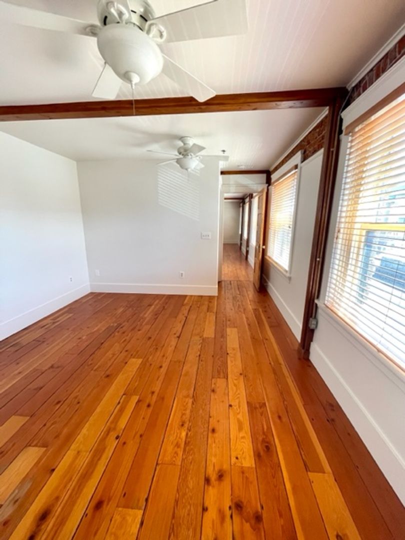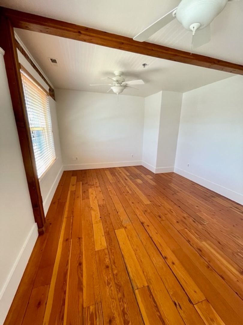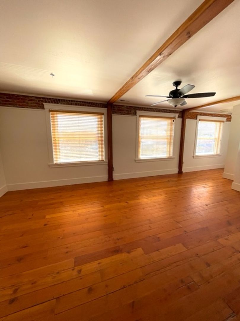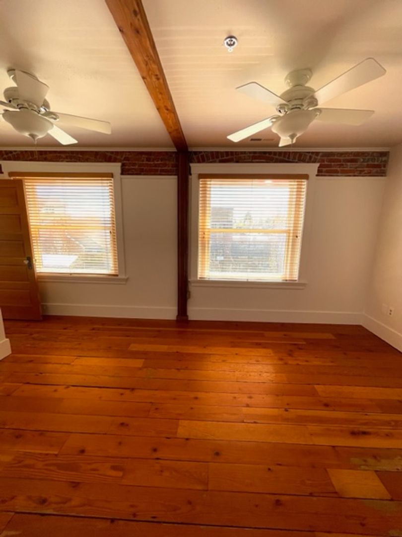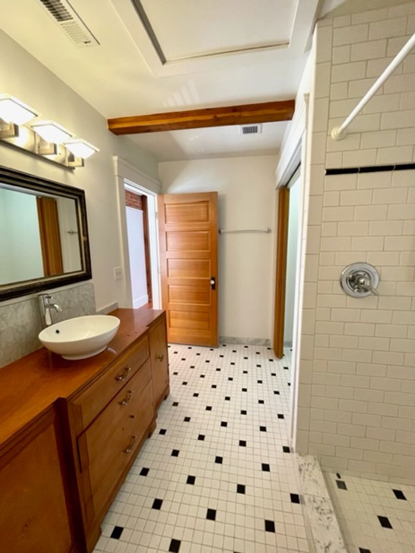 The gem of this home is when you walk into the open living space that has large windows and faces out to Bond St. This space feels so warm and cozy! As you continue on, you are led down the hall to a full bathroom featuring a fun retro tile and a stack-able washer/dryer, sink and shower. Beyond the bathroom is the spacious bedroom with bright big windows.