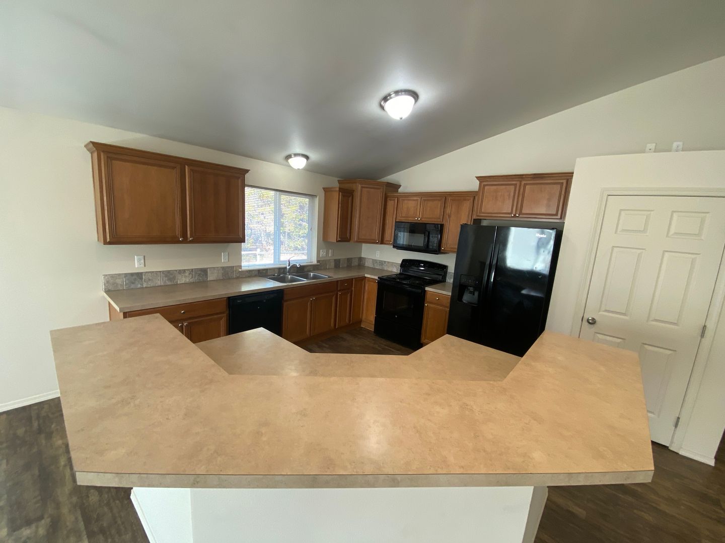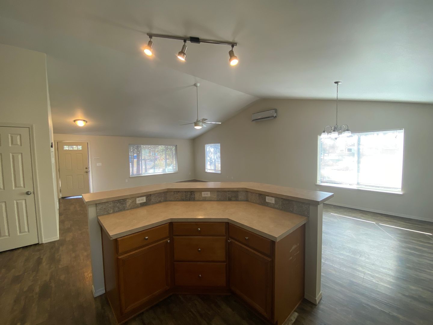 Welcome home to this beautifully maintained single-level craftsman tucked among the pines in La Pine. This spacious three-bedroom, two-bath home offers an open and inviting layout with vaulted ceilings, large windows that bring in natural light, and wood-style flooring throughout the main living areas. The kitchen features warm cabinetry, generous counter space, and an island that’s perfect for entertaining or casual meals.