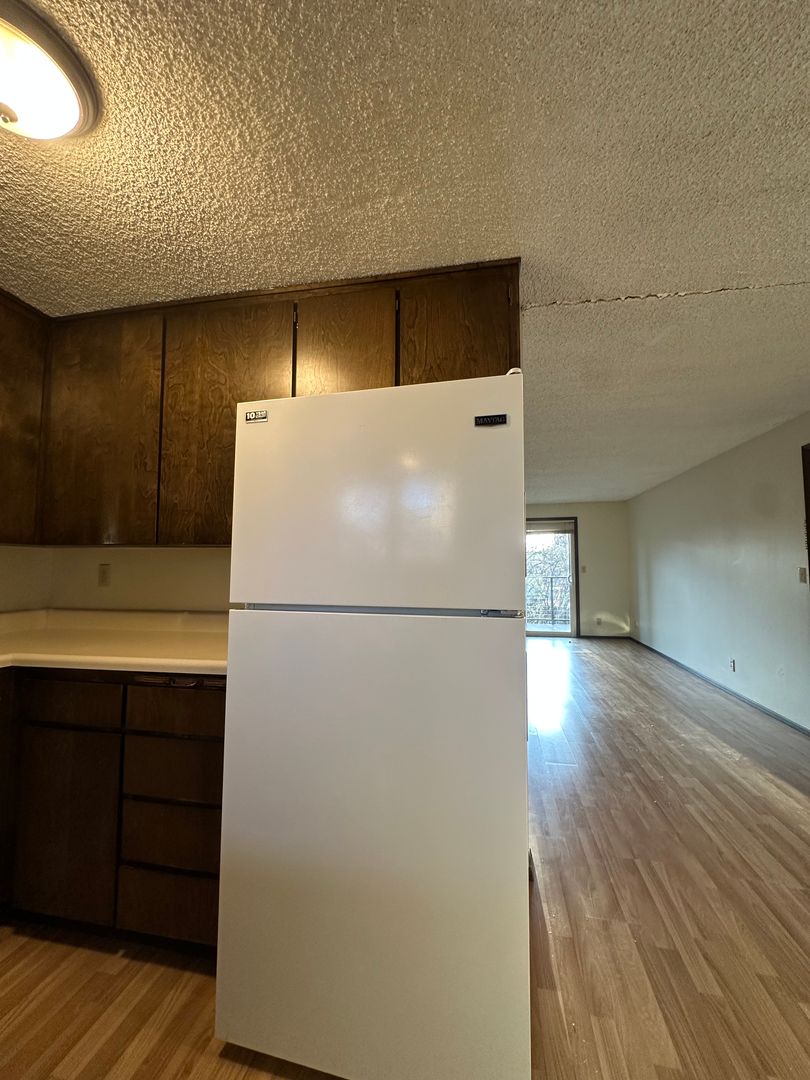 This beautifully updated 3-bedroom, 1-bath apartment is ideally located in the heart of downtown Bend. Situated on the second floor, this spacious unit offers over 1,000 square feet of comfortable living space and has been freshly repainted throughout. Recent renovations include attractive new laminate flooring in the living and dining areas and a fresh coat of paint throughout, creating a clean and modern feel while maintaining its original charm.