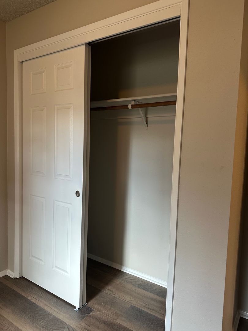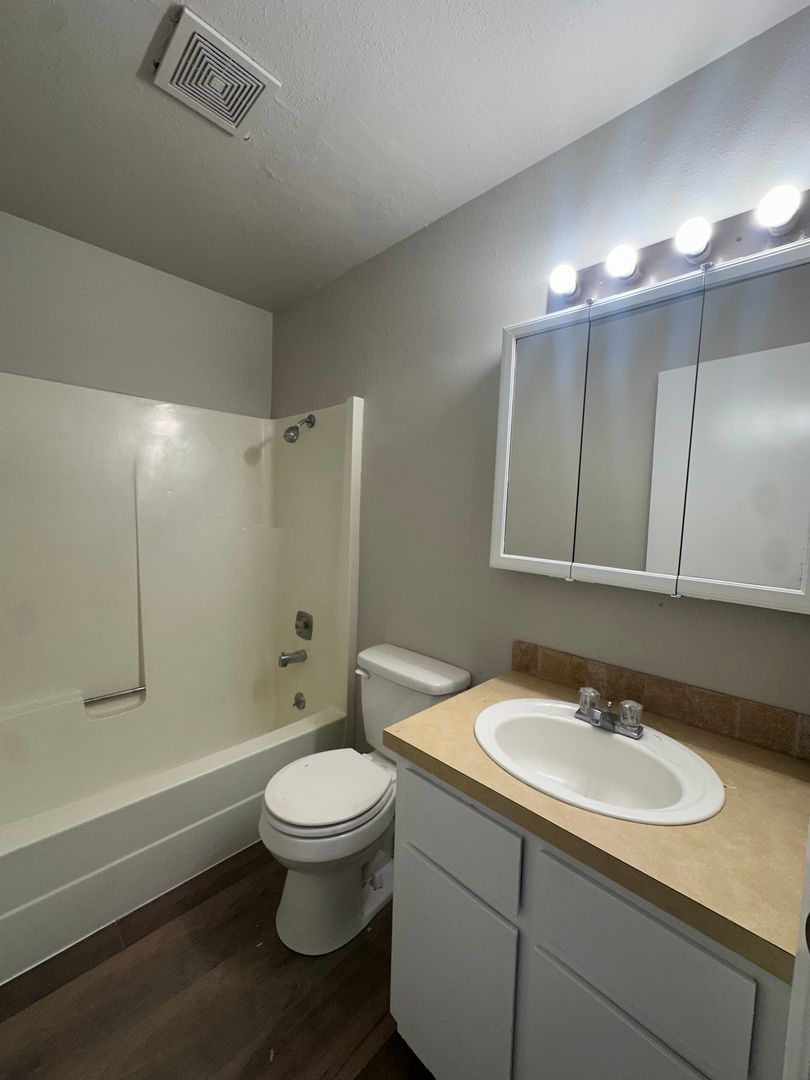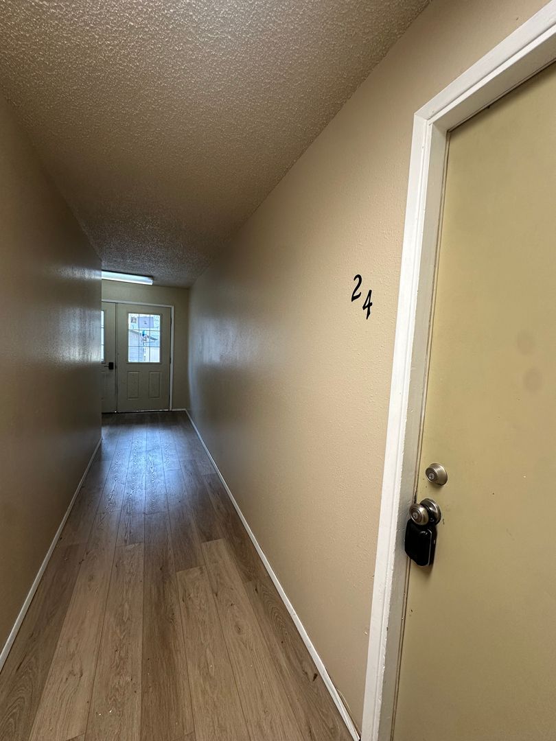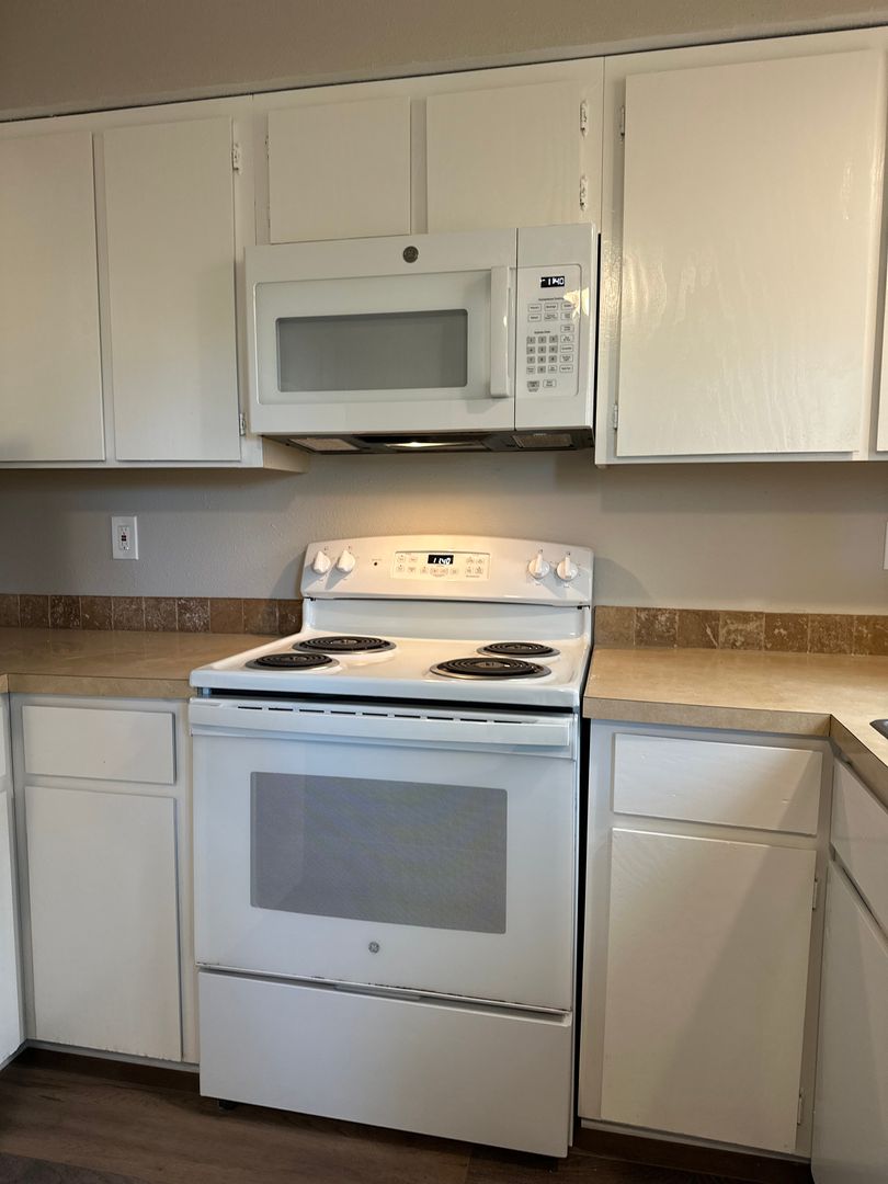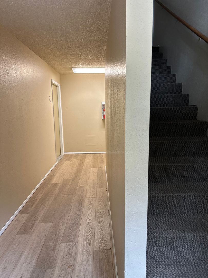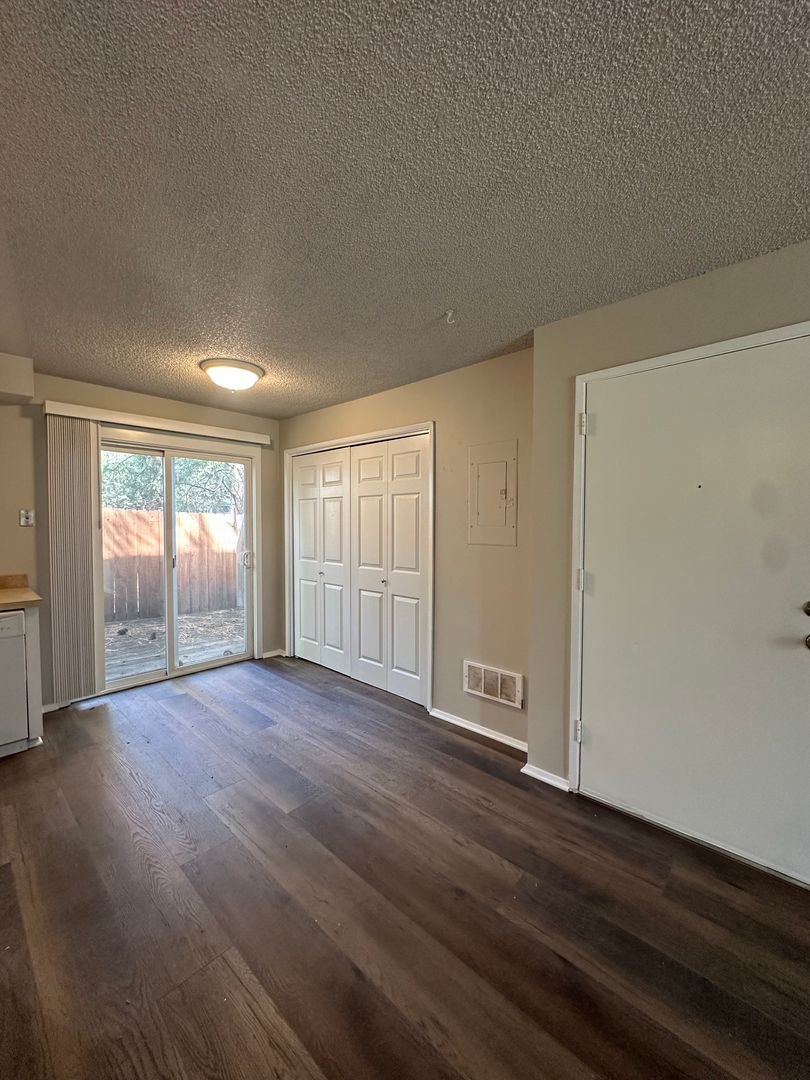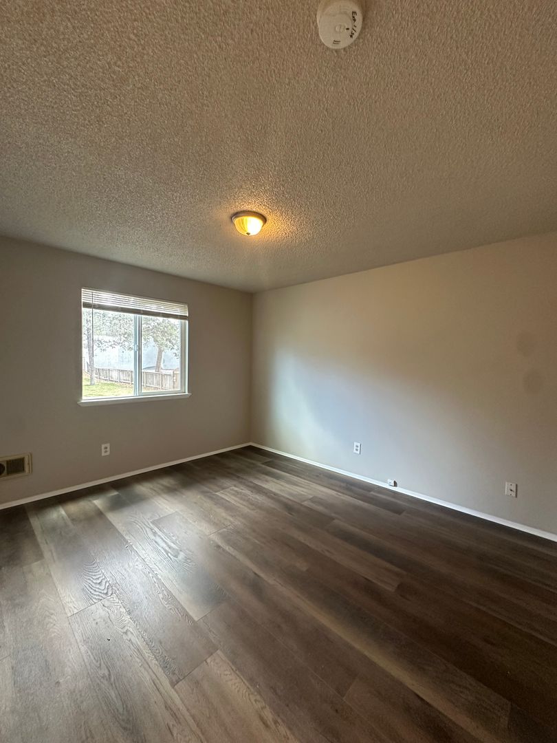 Cozy and updated two-bedroom, one-bath apartment available in Bend, conveniently located near the Old Mill District. This inviting ground-floor home features fresh interior paint, brand new LVP flooring throughout, and newly refreshed kitchen cabinets, giving the space a clean and modern feel. The kitchen offers plenty of cabinetry and space. Washer and dryer hookups add everyday convenience.