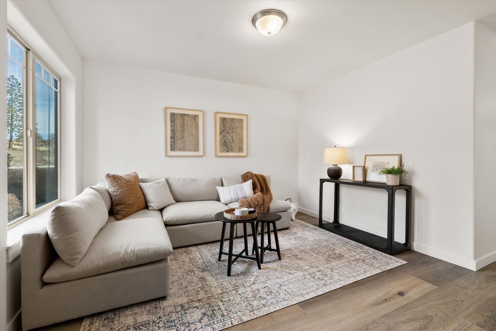 Large windows throughout the home bring in natural light and showcase the surrounding area, while the overall layout feels open yet cozy. Water and sewer are included in the rent, with all other utilities being the tenant’s responsibility.