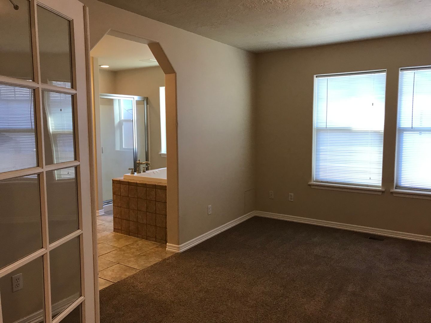 The primary suite is privately situated and features elegant French doors, a large walk-in closet, and a well-appointed bathroom complete with a soaking Jacuzzi tub. Two additional bedrooms are generously sized and offer ample closet space, making them ideal for guests, family, or a home office.