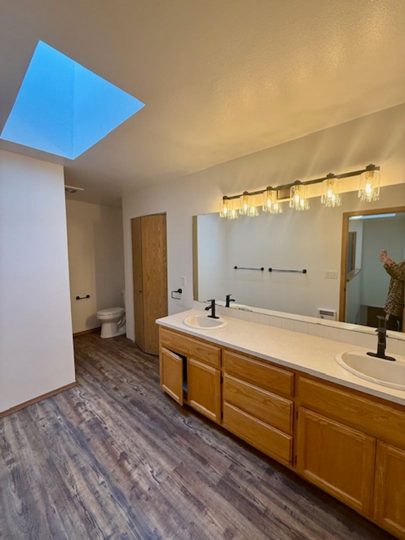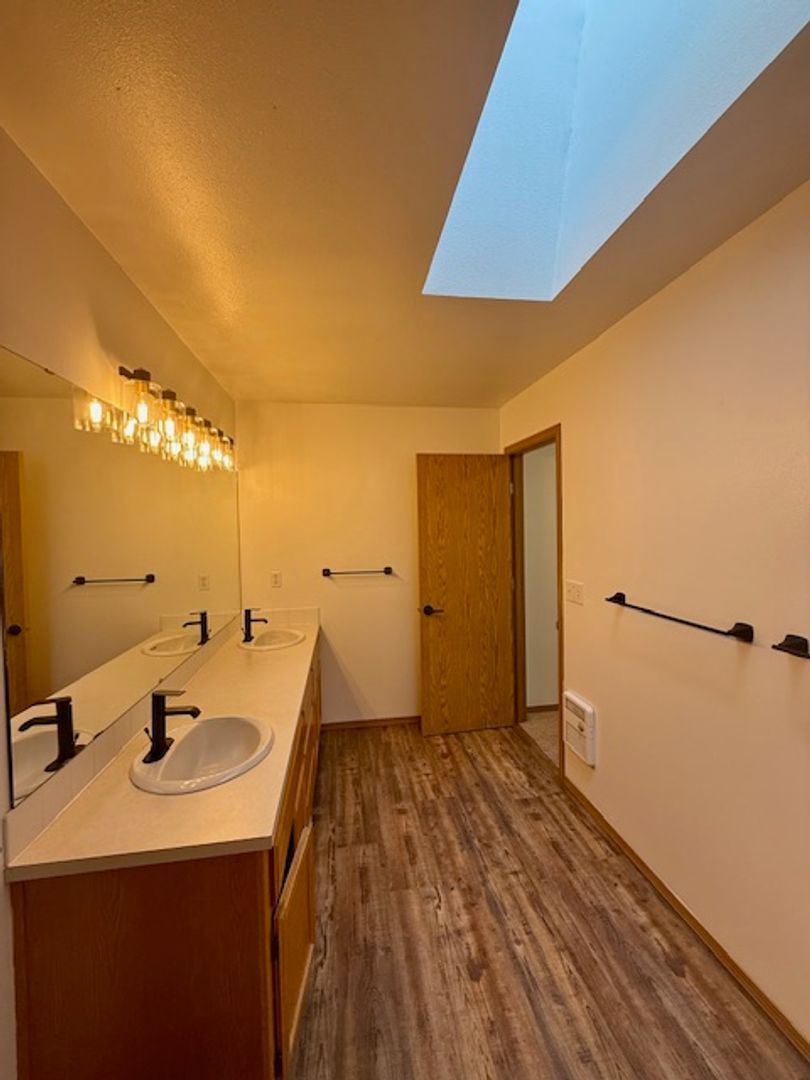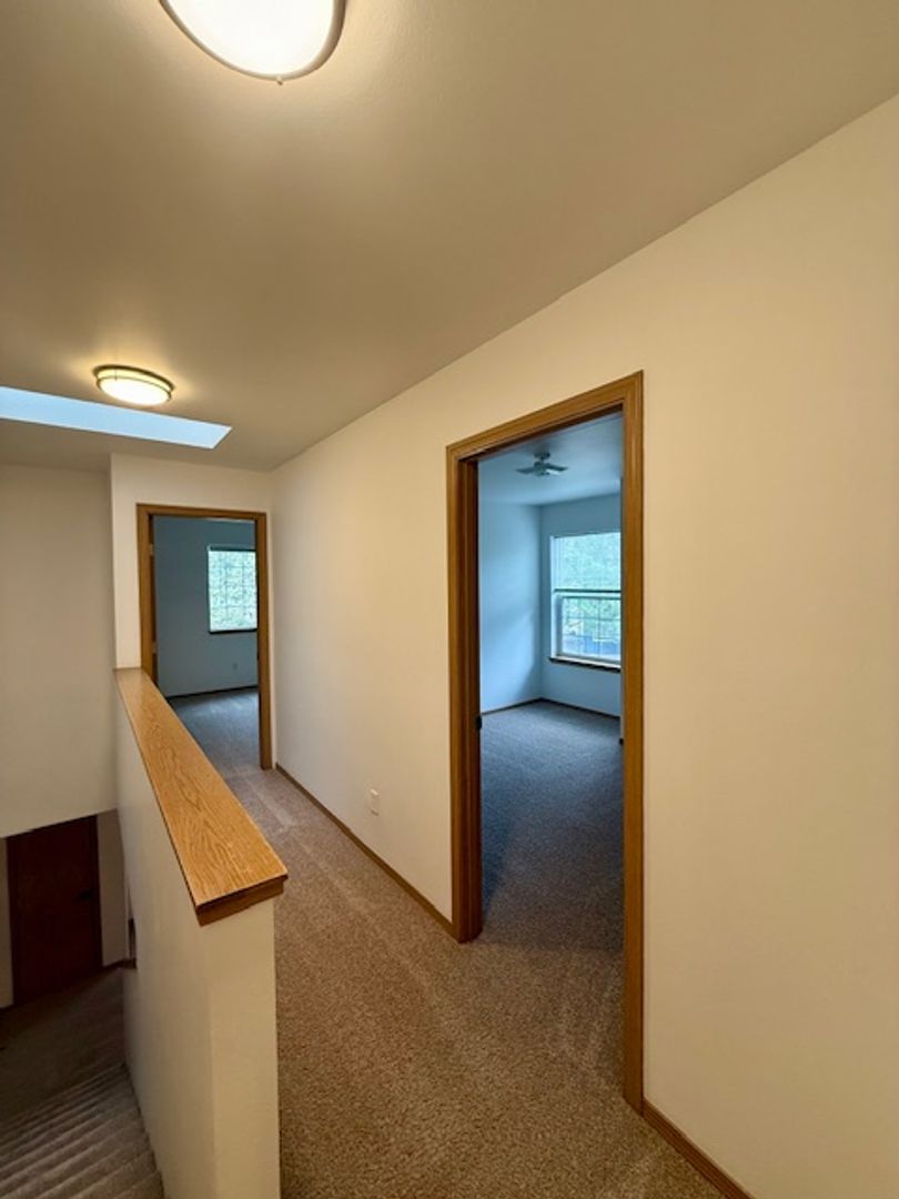 The main level offers a spacious, open living area along with a convenient half bath and washer/dryer hookups. Upstairs, you’ll find a generously sized bathroom enhanced by a skylight that fills the space with natural light. Both bedrooms are large and bright, each with oversized windows that create a warm and welcoming atmosphere.