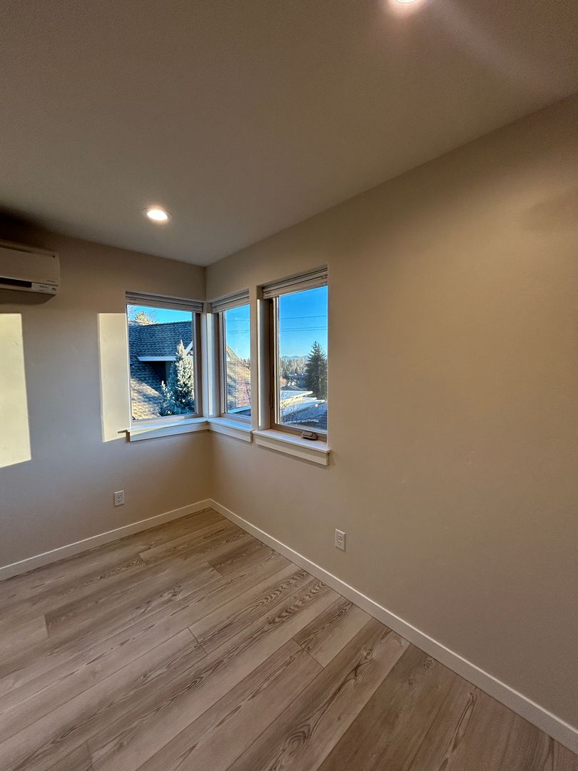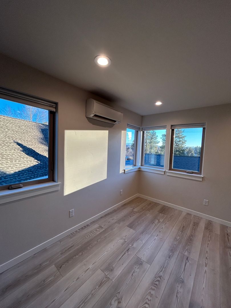 Modern, detached home with 1 bedroom, 1 1/2 baths and a large 2 car garage. Plenty of windows help to make the home light and bright! Ductless heating and cooling! Located in the heart of NW Bend enjoy all the westside has to offer, restaurants, shopping... Close to downtown and on your way the Mt. Bachelor! 2 car maximum, one car in driveway only. Landscaping included.