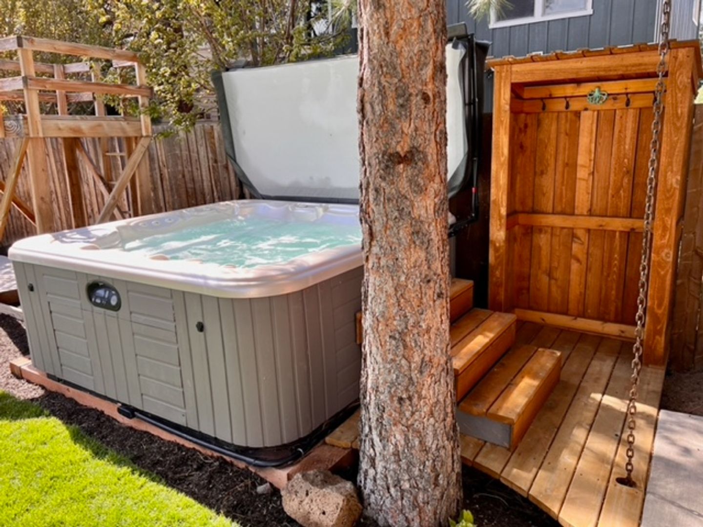 Located in SW Bend, only a few blocks from the River Trails, this home offers an excellent open floor plan with large kitchen, slab quartz counters, hardwood floors, bar area with built-in wine fridge and a large pantry. Spacious primary bedroom with walk-in closet and en-suite bathroom. Bathroom offers tile, a double vanity and walk in shower. Wonderful, fully fenced in backyard with a covered back patio for outdoor entertainment, hot tub included but must be professionally maintained and paid for by the renter. Double garage has workbench and built-in shelving. Carport for additional storage. Short distance to Old Mill District, parks, school and Brookswood Plaza.